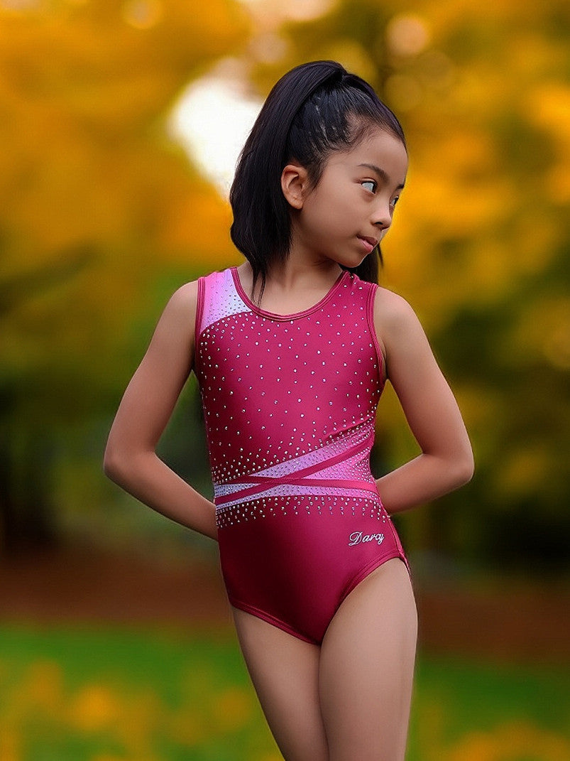 Looking for leotard with class and style ... well this is it! A stunning Satin Lycra leotard in eye-catching Deep Burgundy with complimenting mesh ombre panels, this leotard has the most perfect flattering lines. Adorned with super sparkly AB crystals and in a tank style with eye-catching strappy back detail, Charm is perfect for those gymnasts who like to look sophisticated at gym.