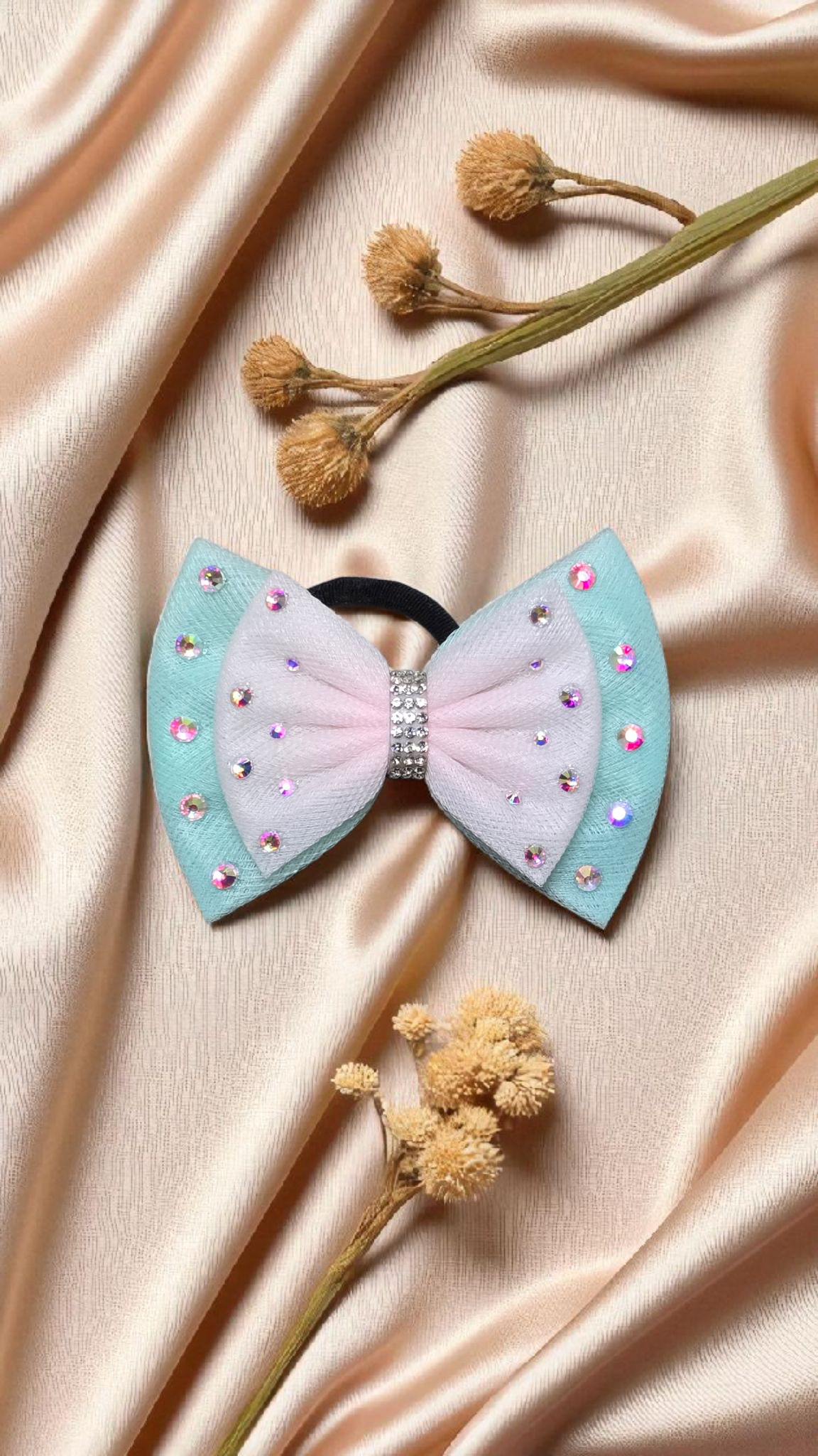 An elegant double-layer bow designed with superior rhinestones, combining simplicity with sophisticated sparkle.
