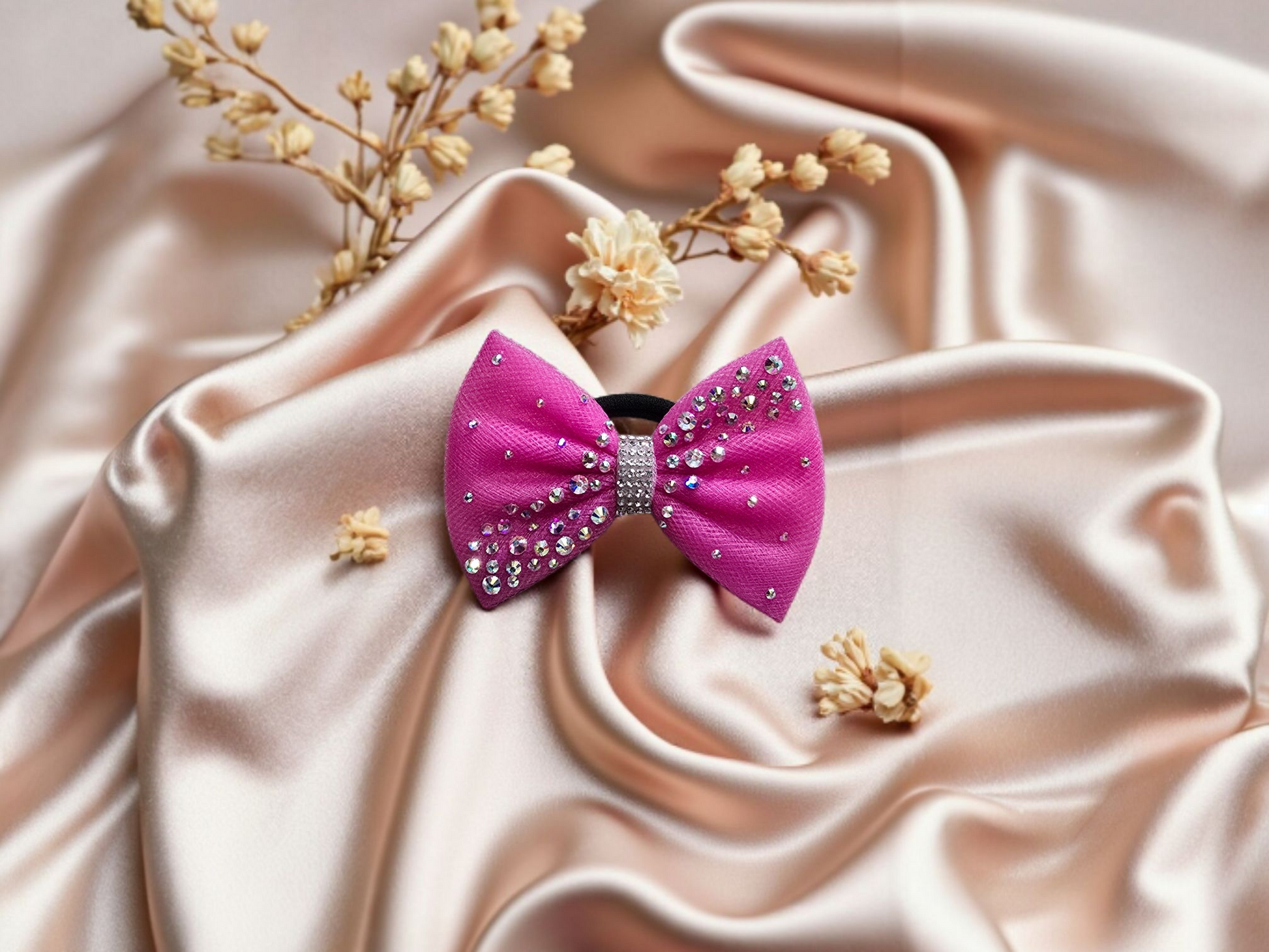 An elegant single-layer bow designed with superior rhinestones, combining simplicity with sophisticated sparkle.