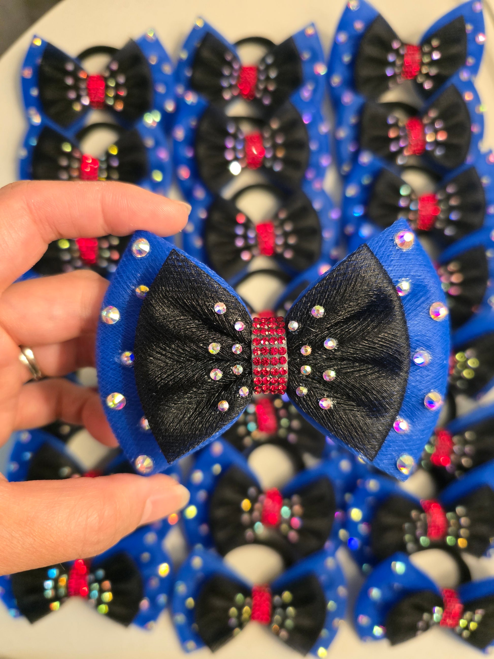 Elevate your team’s look with fully customizable bows designed to match your leotards and showcase your unique style. We create each bow to your specifications, ensuring a perfect fit for your team’s colors and theme. With sparkle, quality, and attention to detail, we’ll make sure your gymnasts shine confidently on the competition floor.