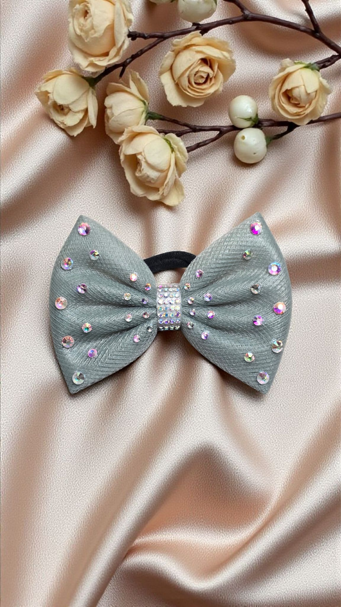 An elegant single-layer bow designed with superior rhinestones, combining simplicity with sophisticated sparkle.