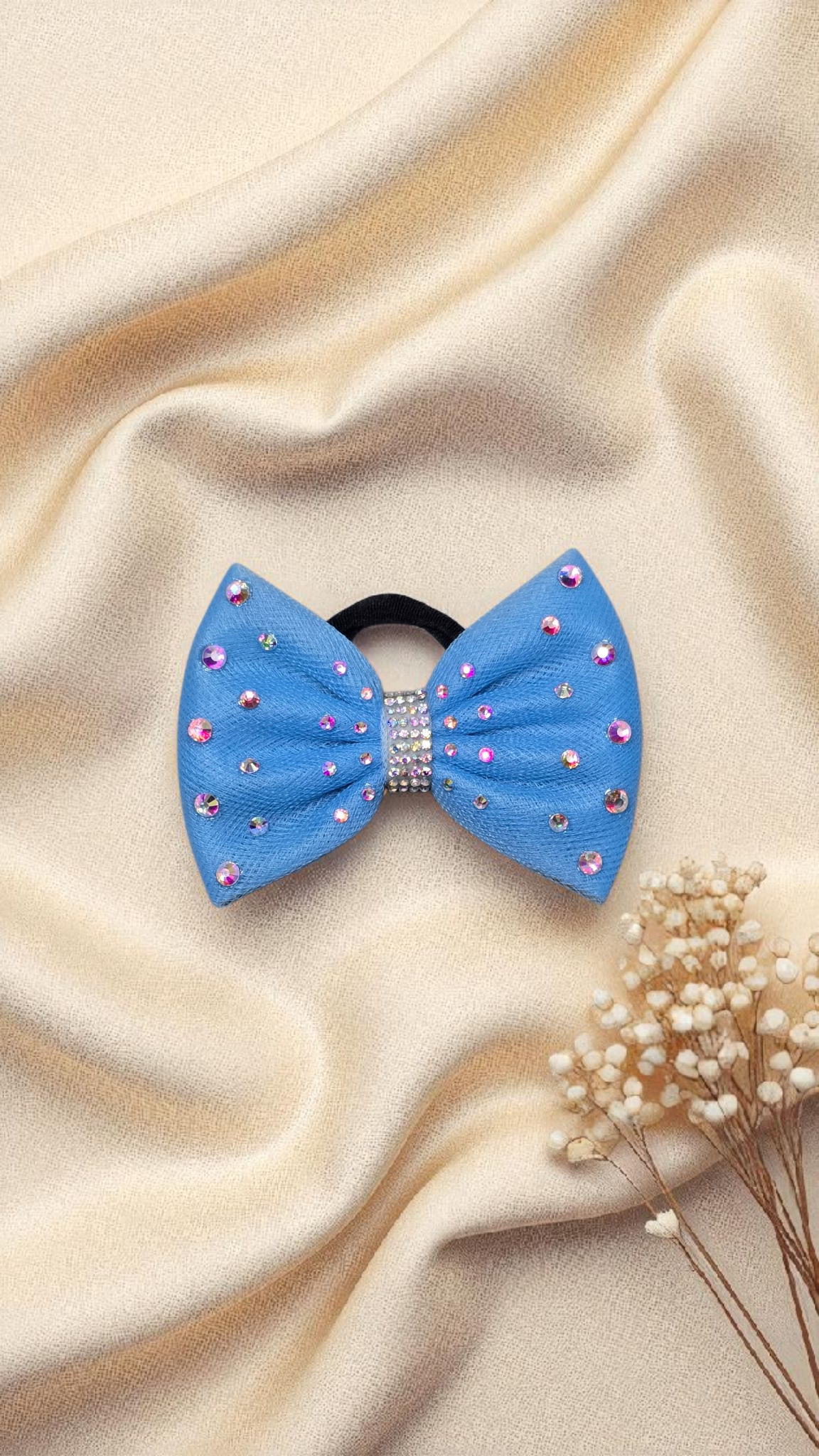 An elegant single-layer bow designed with superior rhinestones, combining simplicity with sophisticated sparkle.