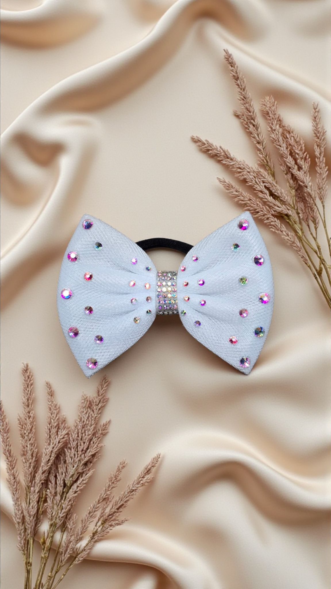 An elegant single-layer bow designed with superior rhinestones, combining simplicity with sophisticated sparkle.