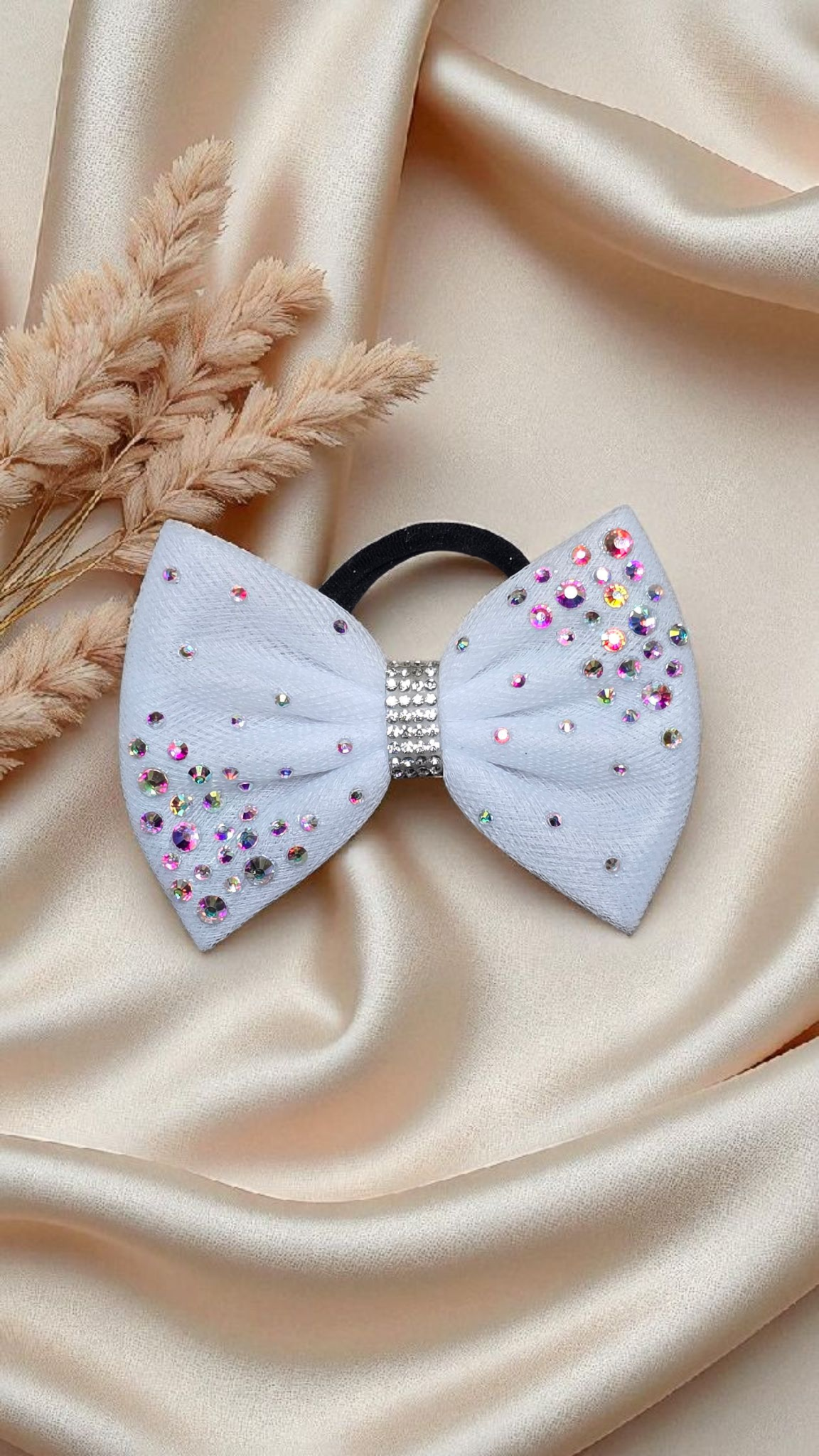 An elegant single-layer bow designed with superior rhinestones, combining simplicity with sophisticated sparkle.